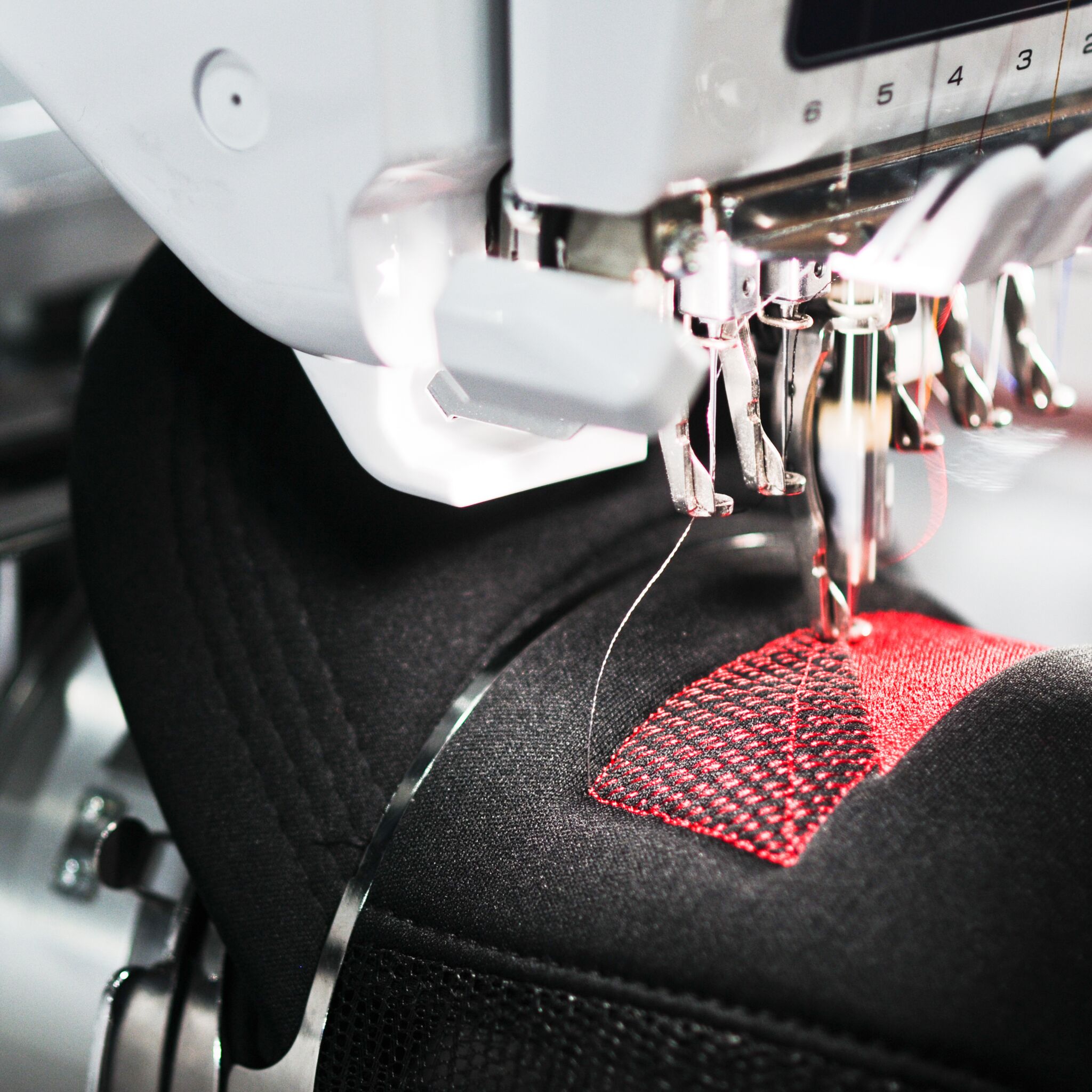 Able to both be done by hand or by machine, we use top of the line Melco industrial embroidery machines to embroider all of our products.